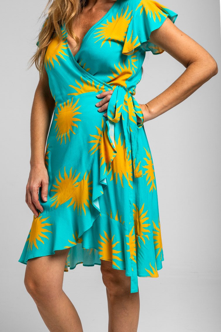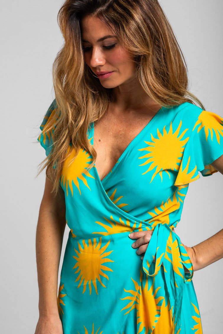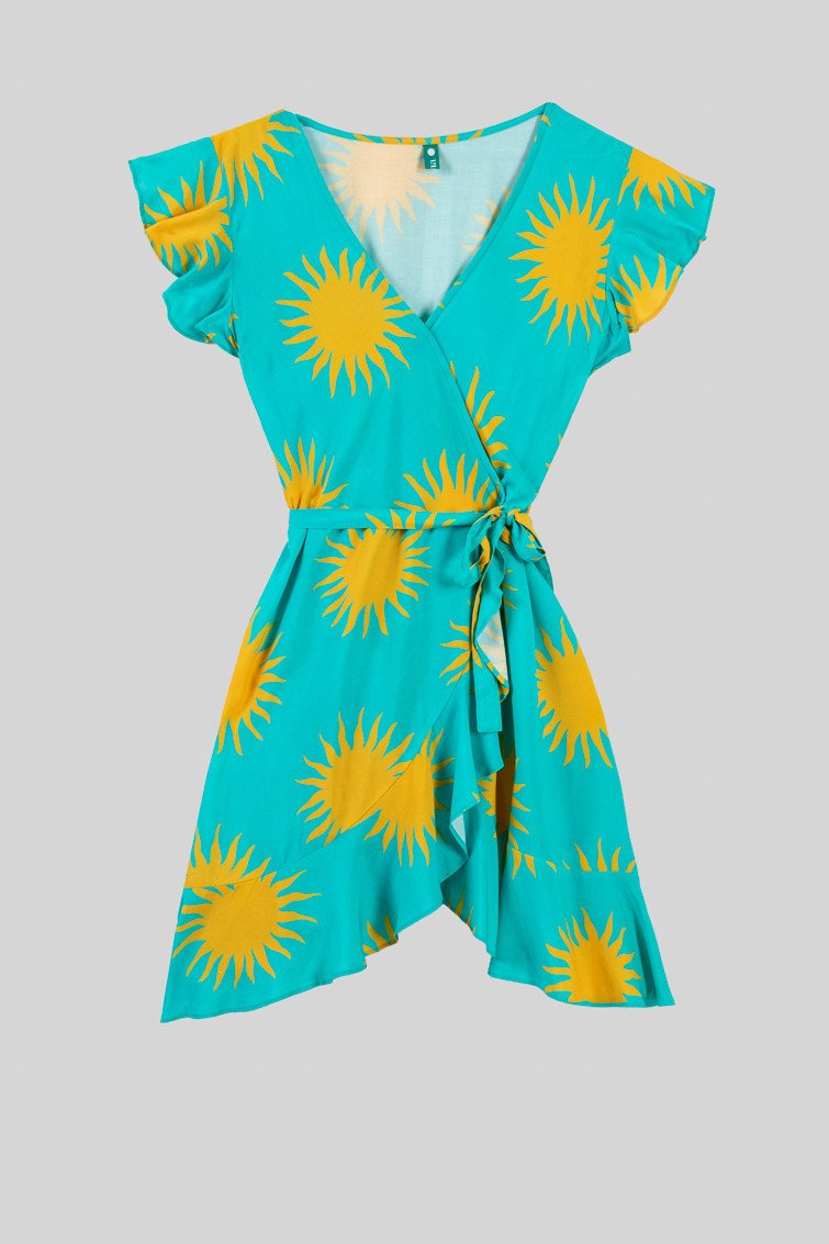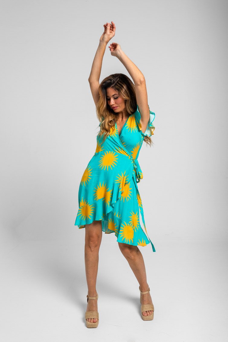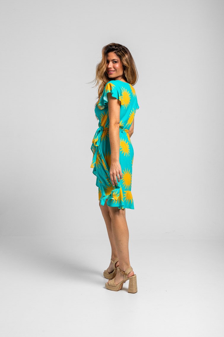 Κοντό φόρεμα με τιρκουάζ βολάν – Oh Sole mio