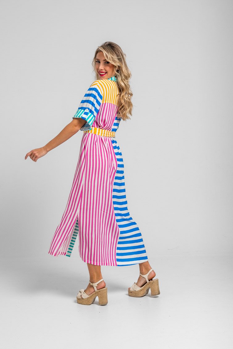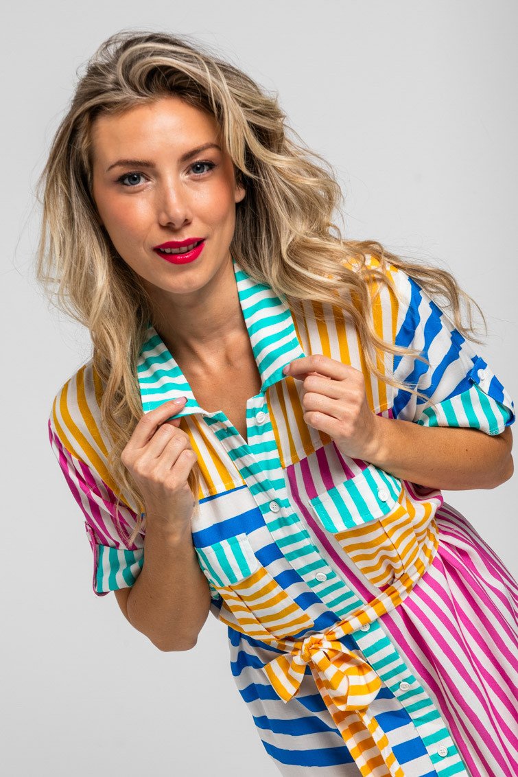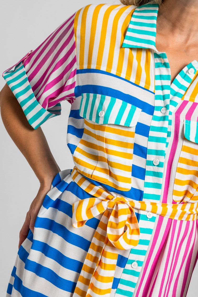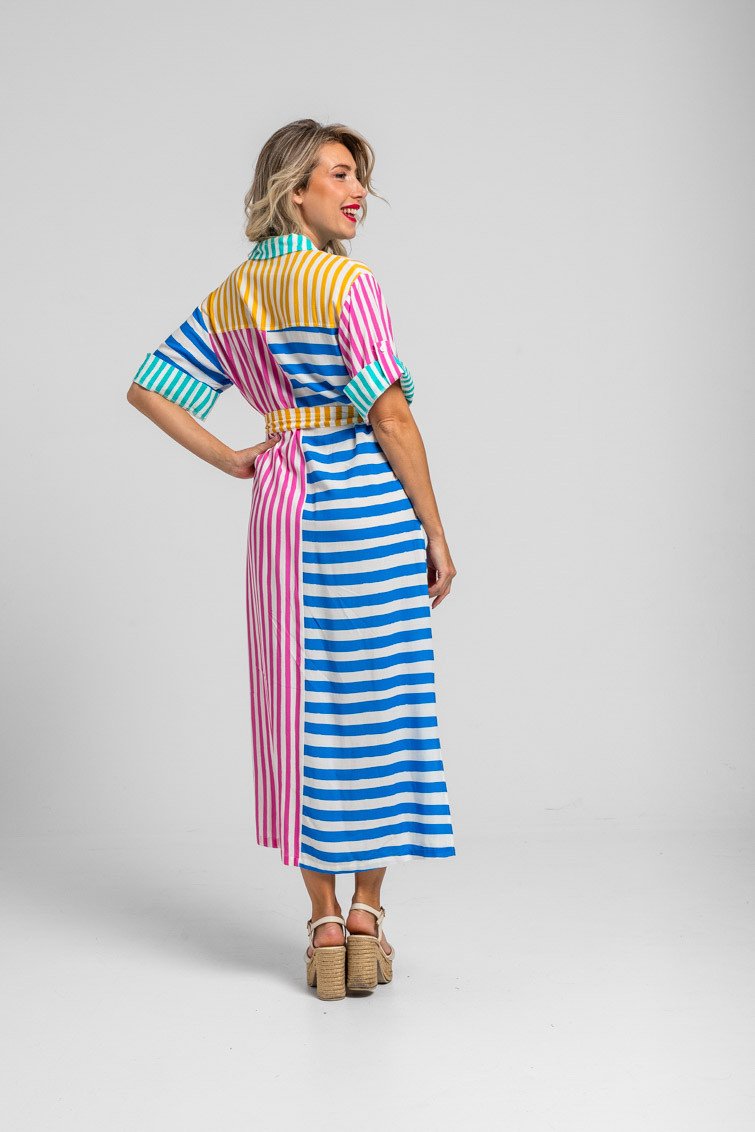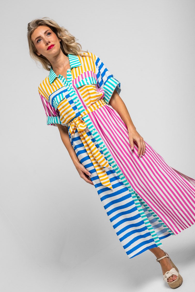 Ριγέ μίντι πουκάμισο σαφάρι- Dolce vita