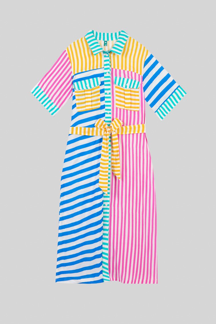 Ριγέ φόρεμα-πουκάμισο μίντι σαφάρι