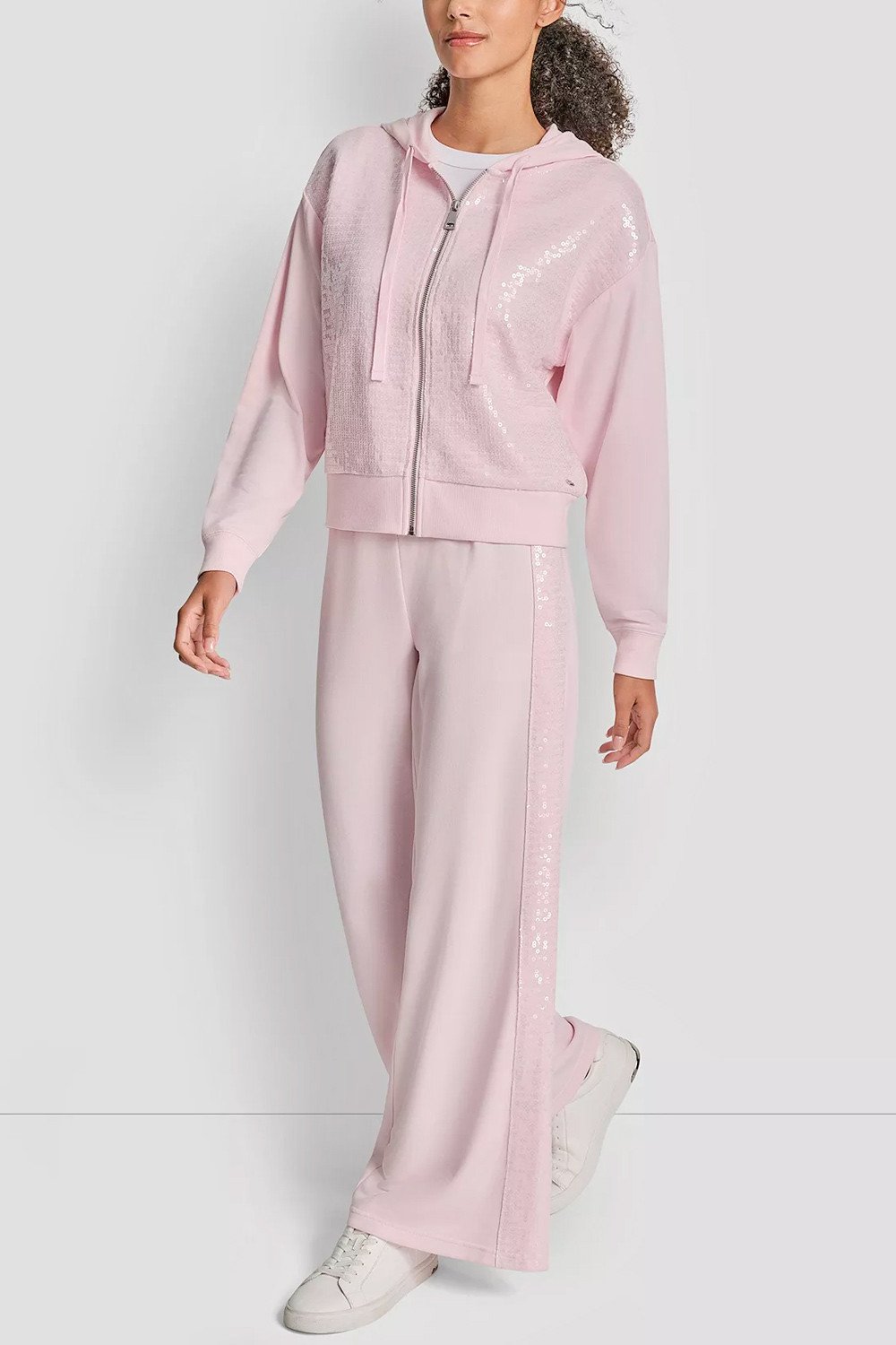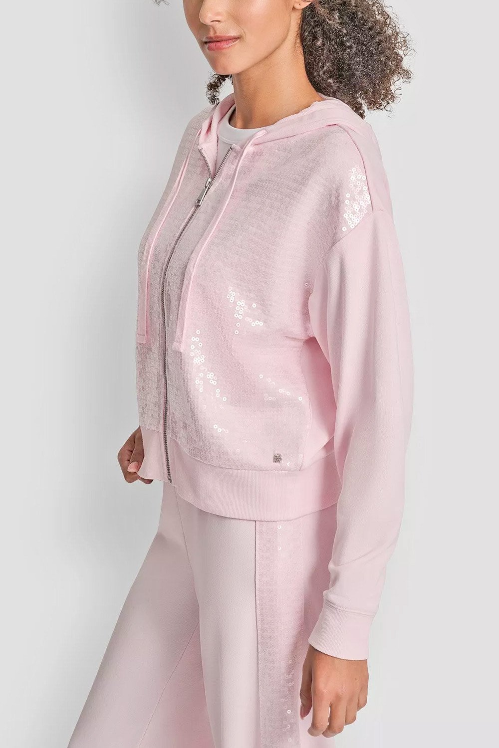 Φούτερ με κουκούλα και φερμουάρ μπροστά με πούλιες