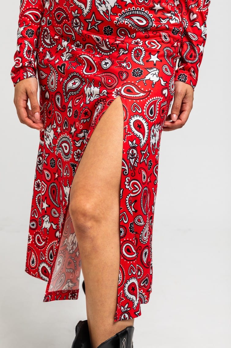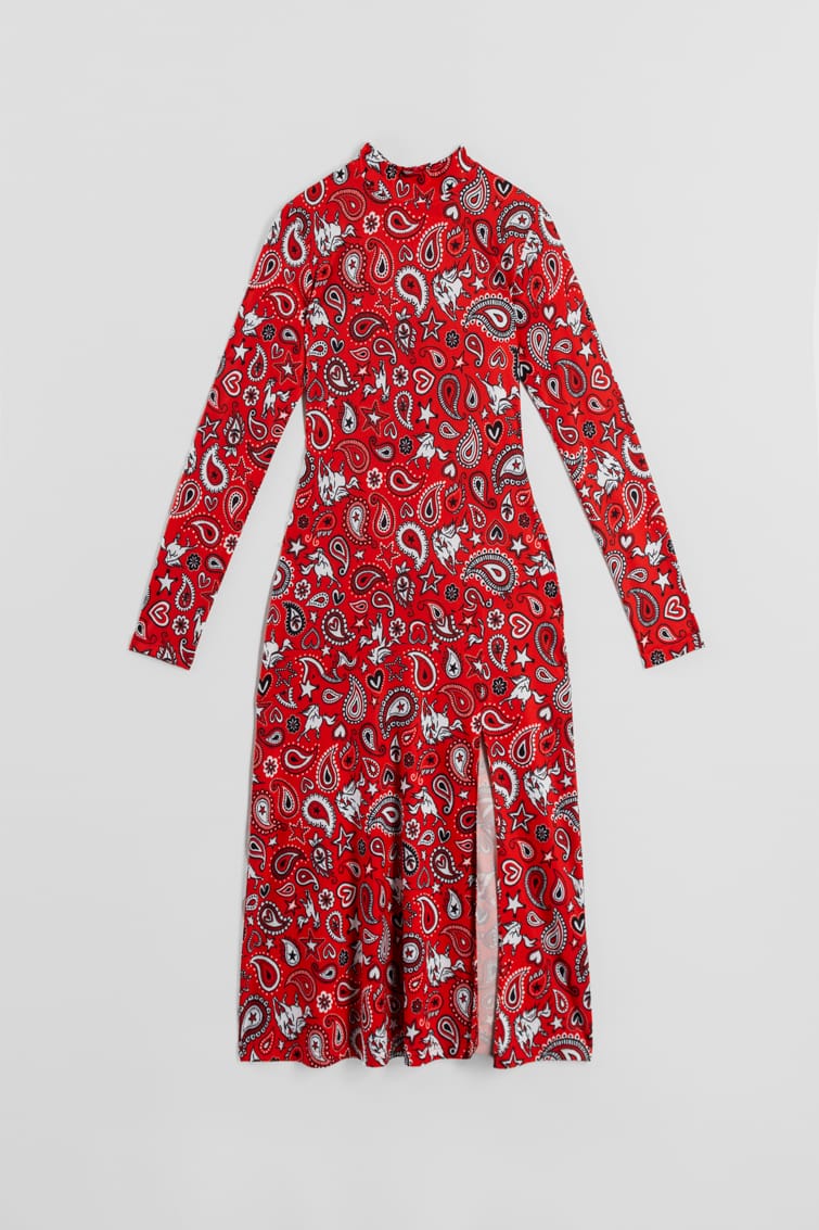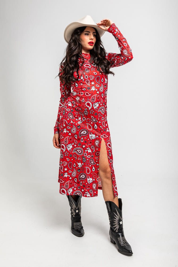 Φόρεμα σε έντονο κόκκινο χρώμα με μοτίβο paisley
