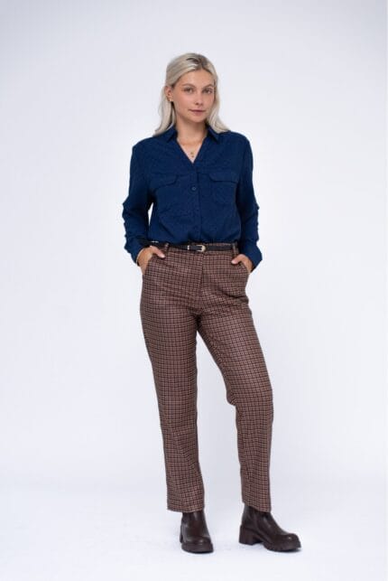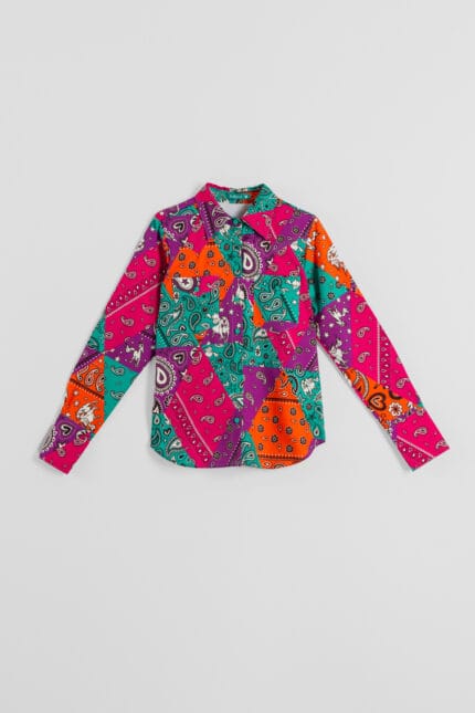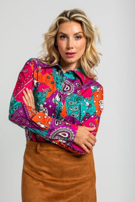 Γυναικείο λευκό τυπωμένο πουκάμισο με ανοιχτό γιακά