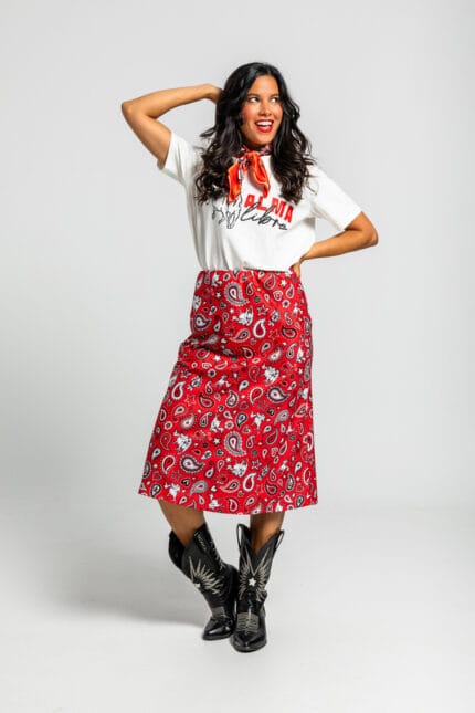 Φούστα με στάμπα με λαχούρια – Alma Libre