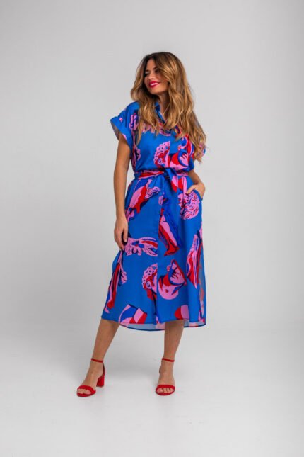 Φόρεμα μίντι με ροζ λαιμόκοψη – Limoncello