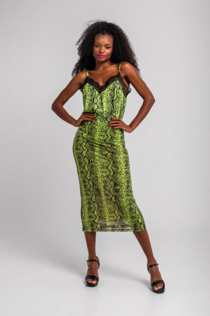 Μακρύ φαρδύ φόρεμα με ρυθμιζόμενες τιράντες- Snake