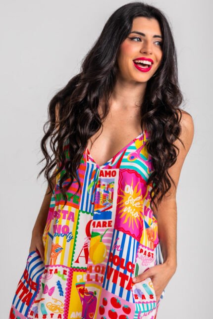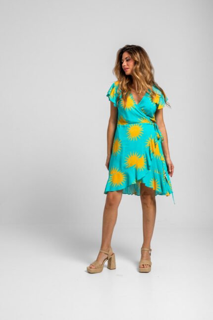 Κοντό φόρεμα με τιρκουάζ βολάν – Oh Sole mio