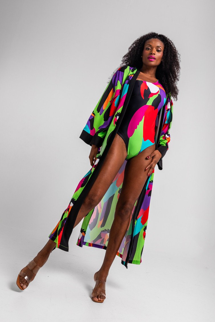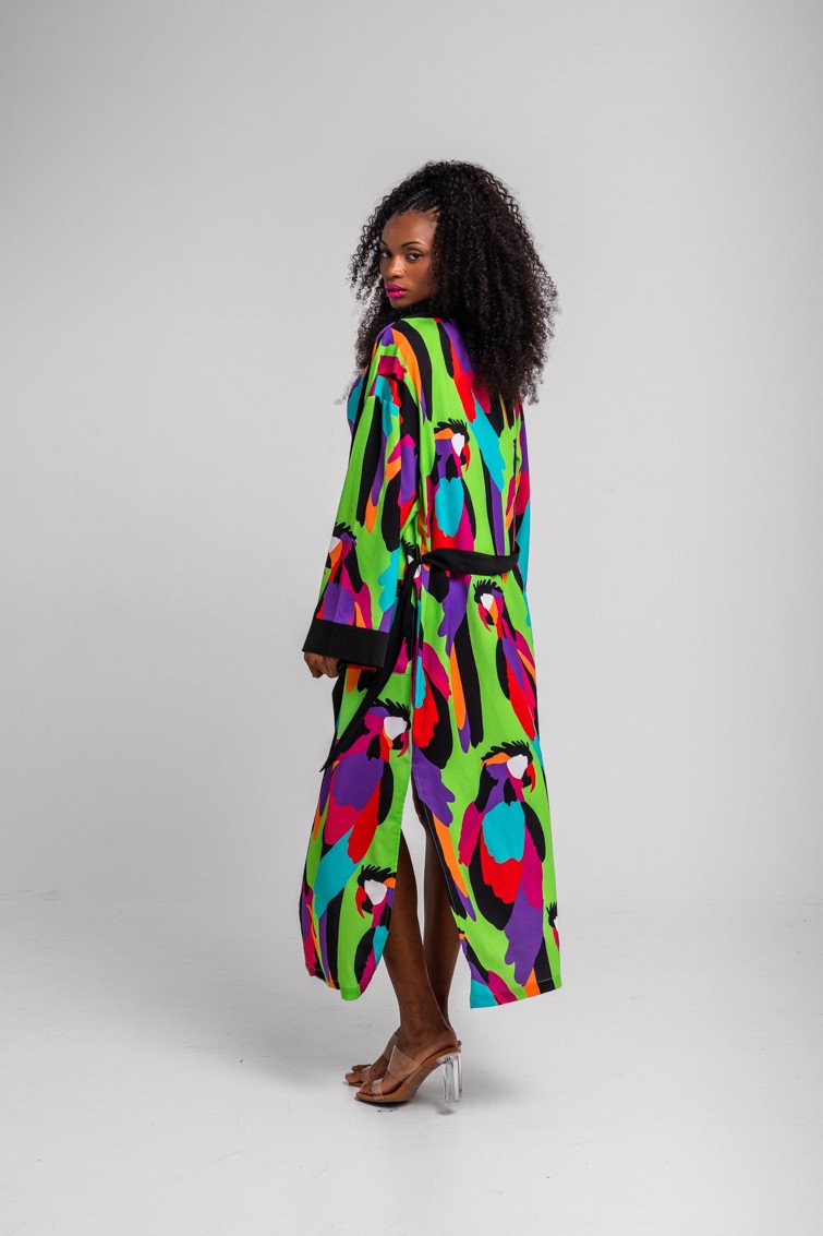Μακρύ πράσινο κιμονό σε σχήμα παπαγάλου.