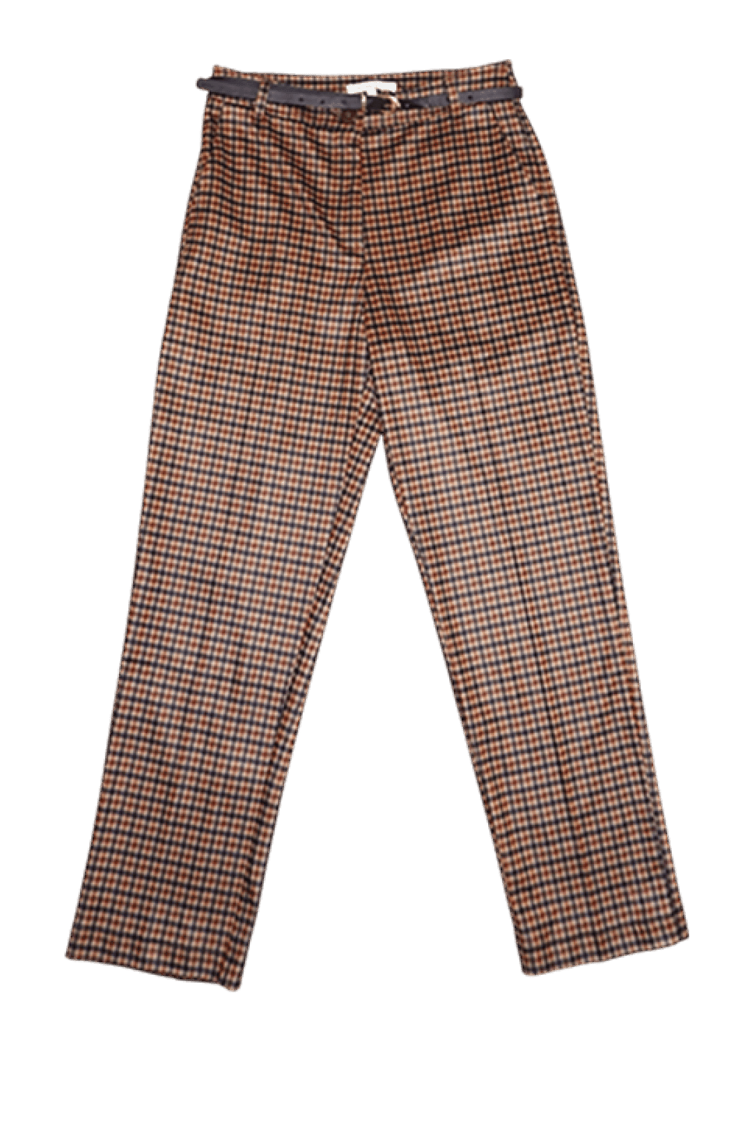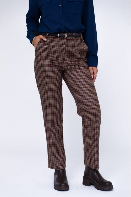 Μακρύ παντελόνι με καρό σχέδιο, θηλιές για ζώνη και διακριτικό κλείσιμο.