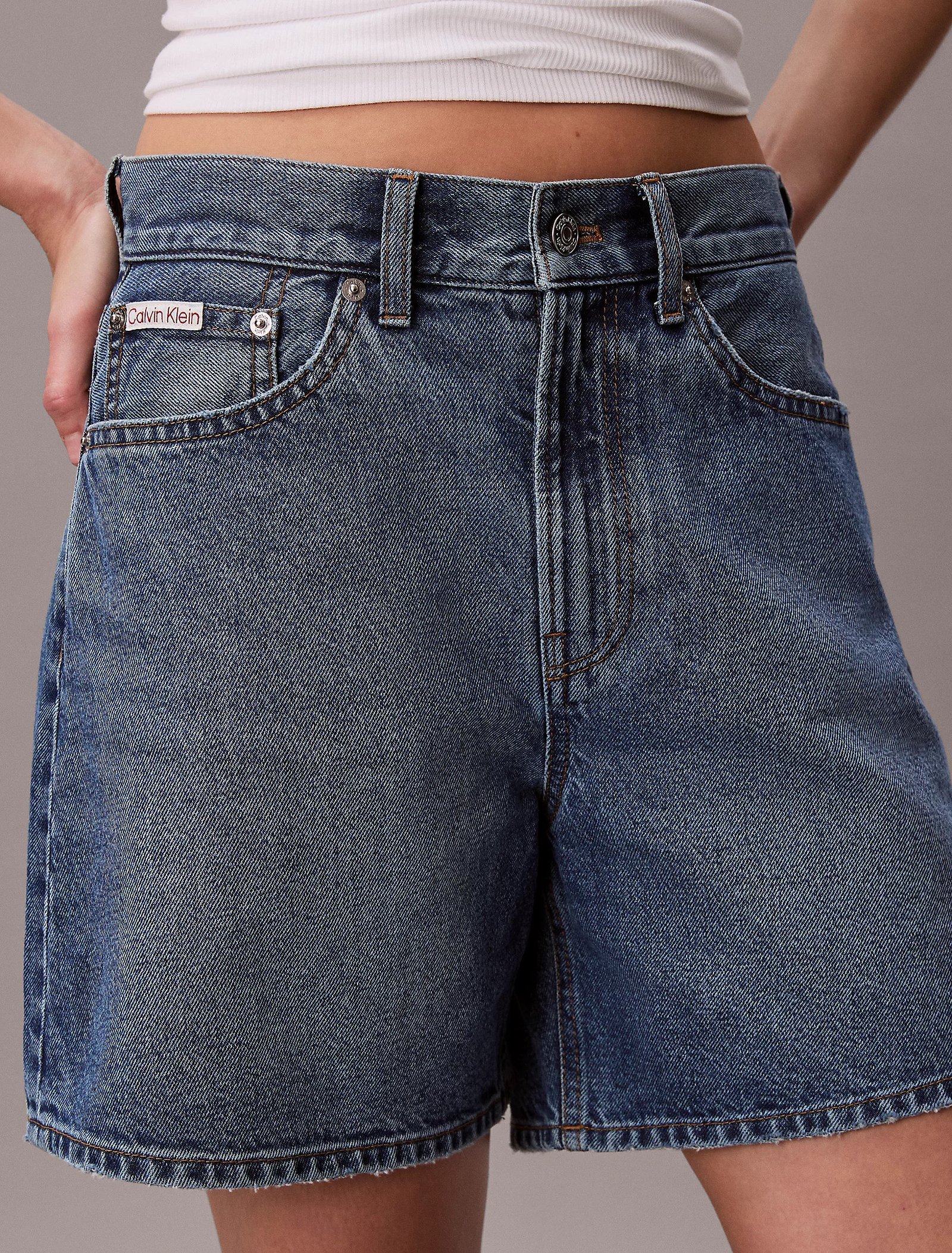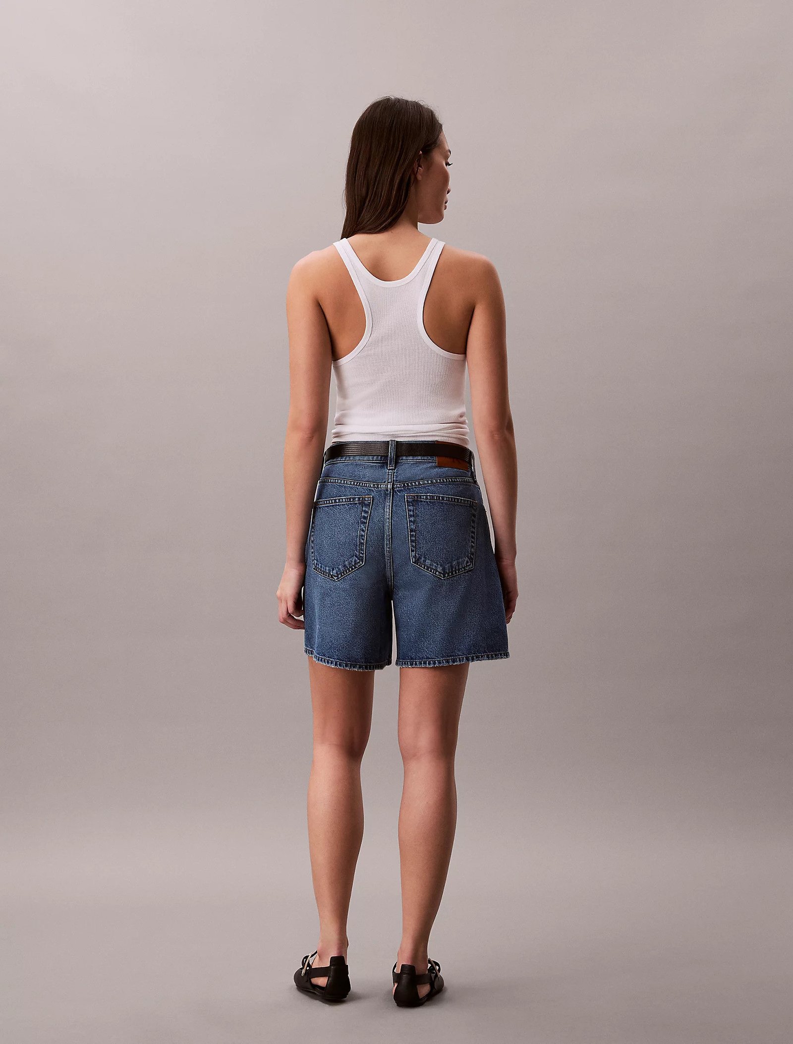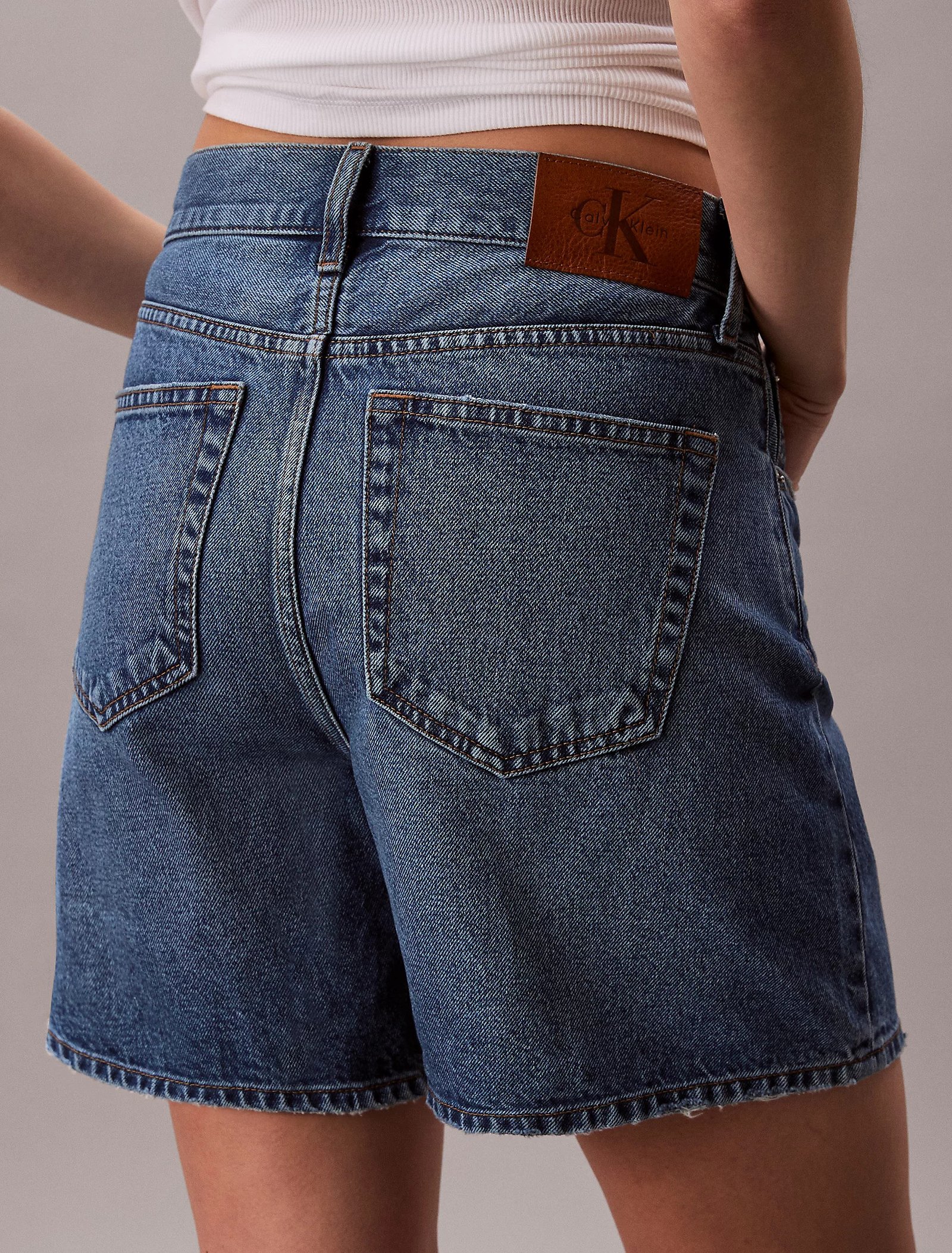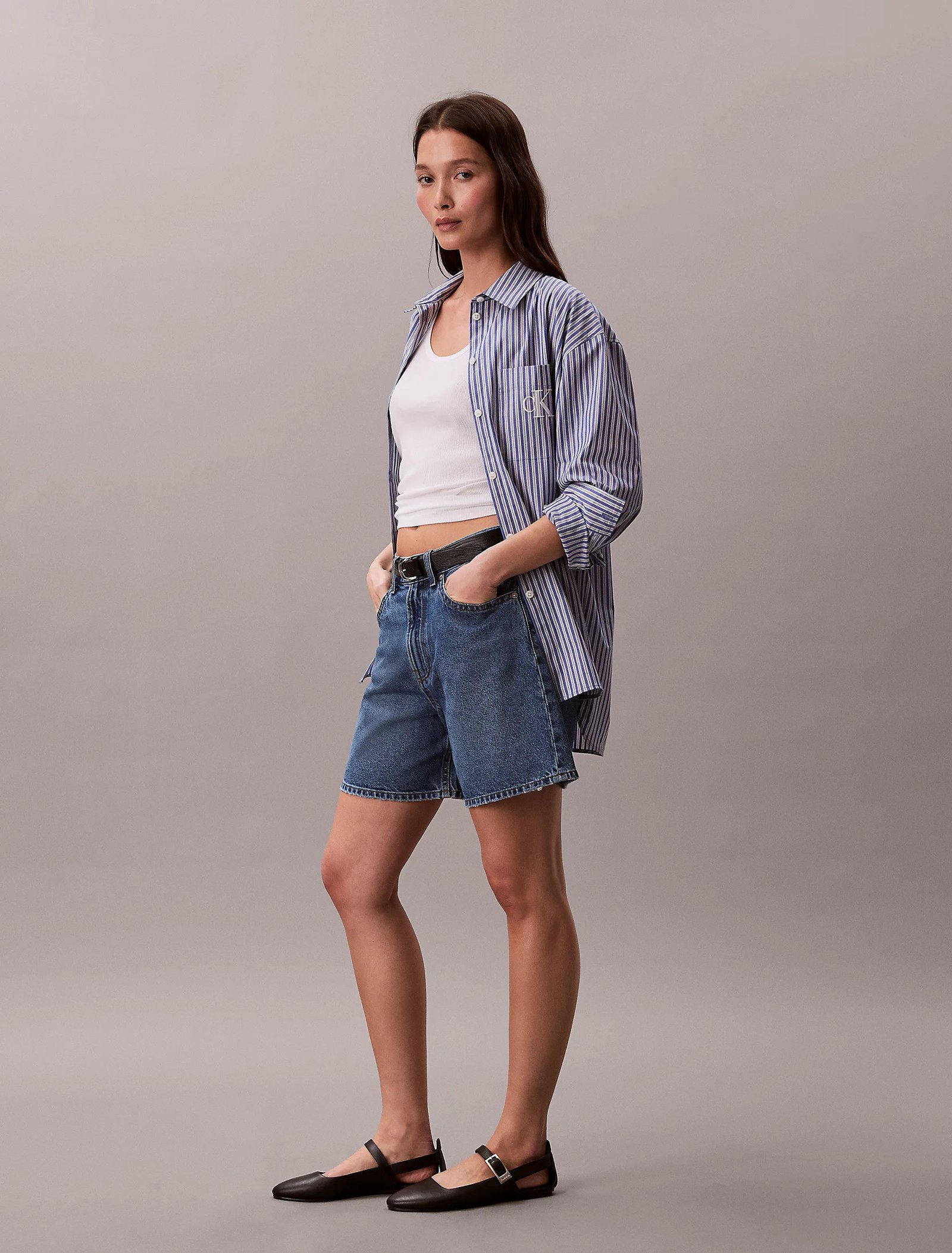Ψηλόμεσο τζιν σορτς με φαρδιά γραμμή