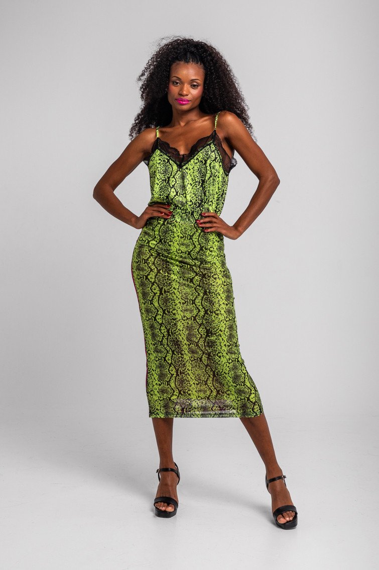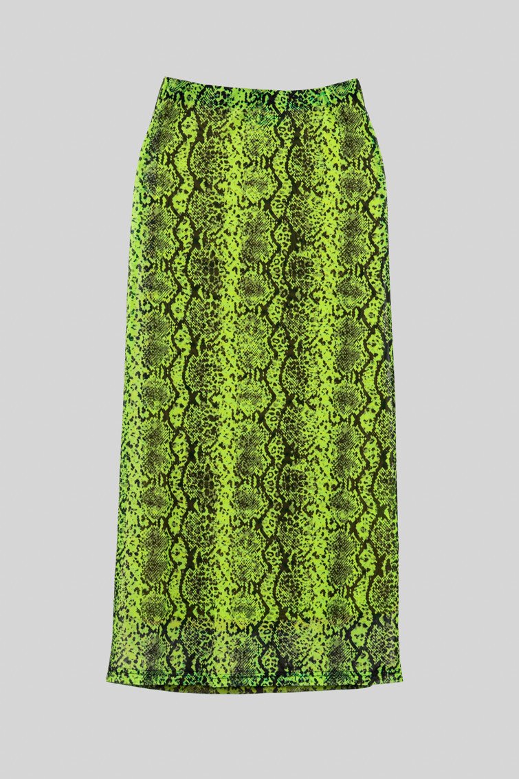 Φούστα από τούλι με στάμπα φιδιού σε χρώμα λάιμ.