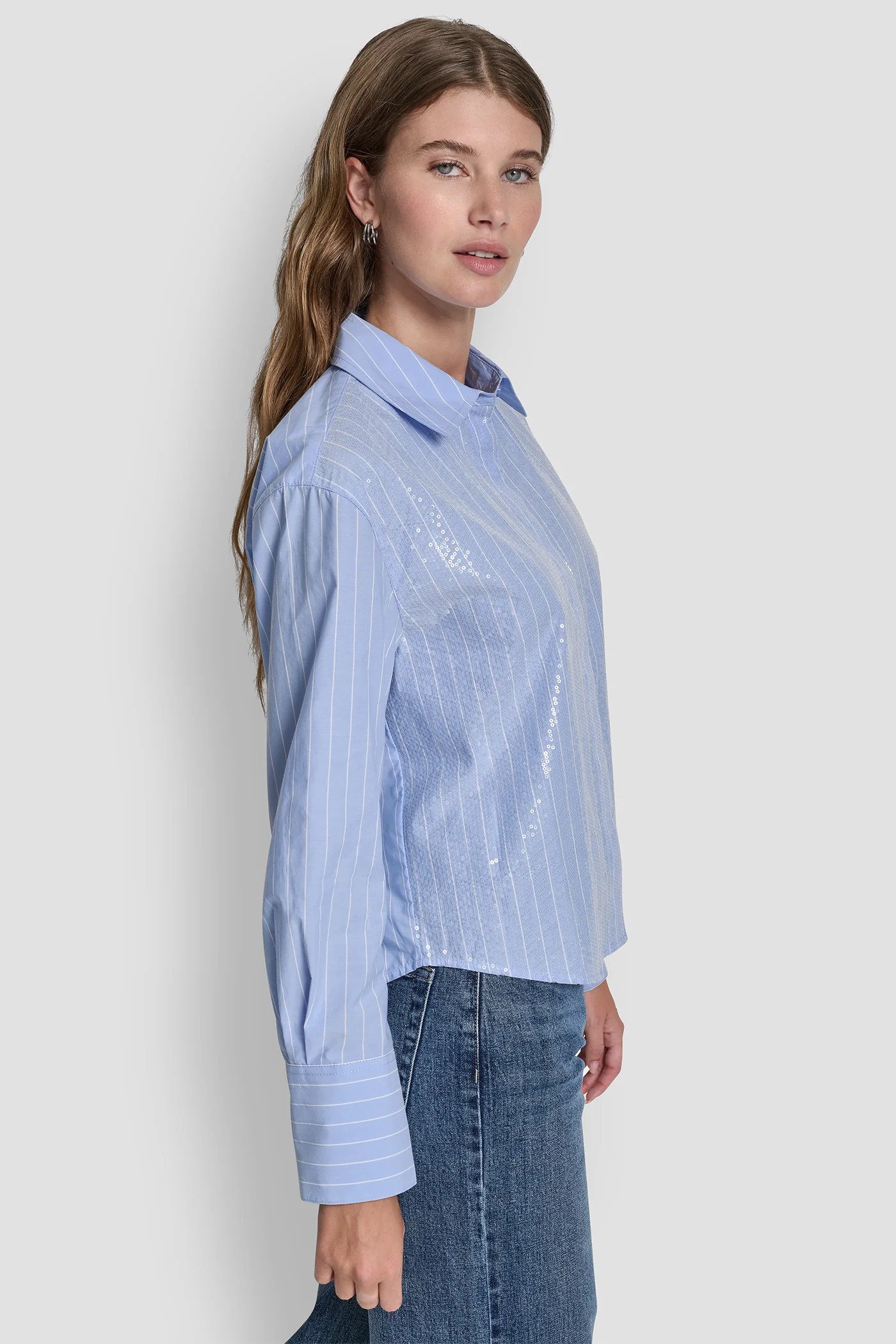 POPLIN BUTTON FRONT SHIRT WITH SEQUINS